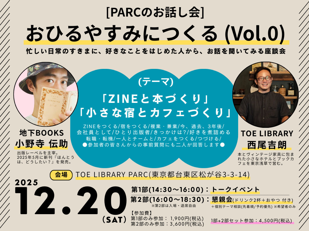 【イベント】~おひるやすみにつくるVol.0~『ZINEと本づくり/ 小さな宿とカフェづくり』